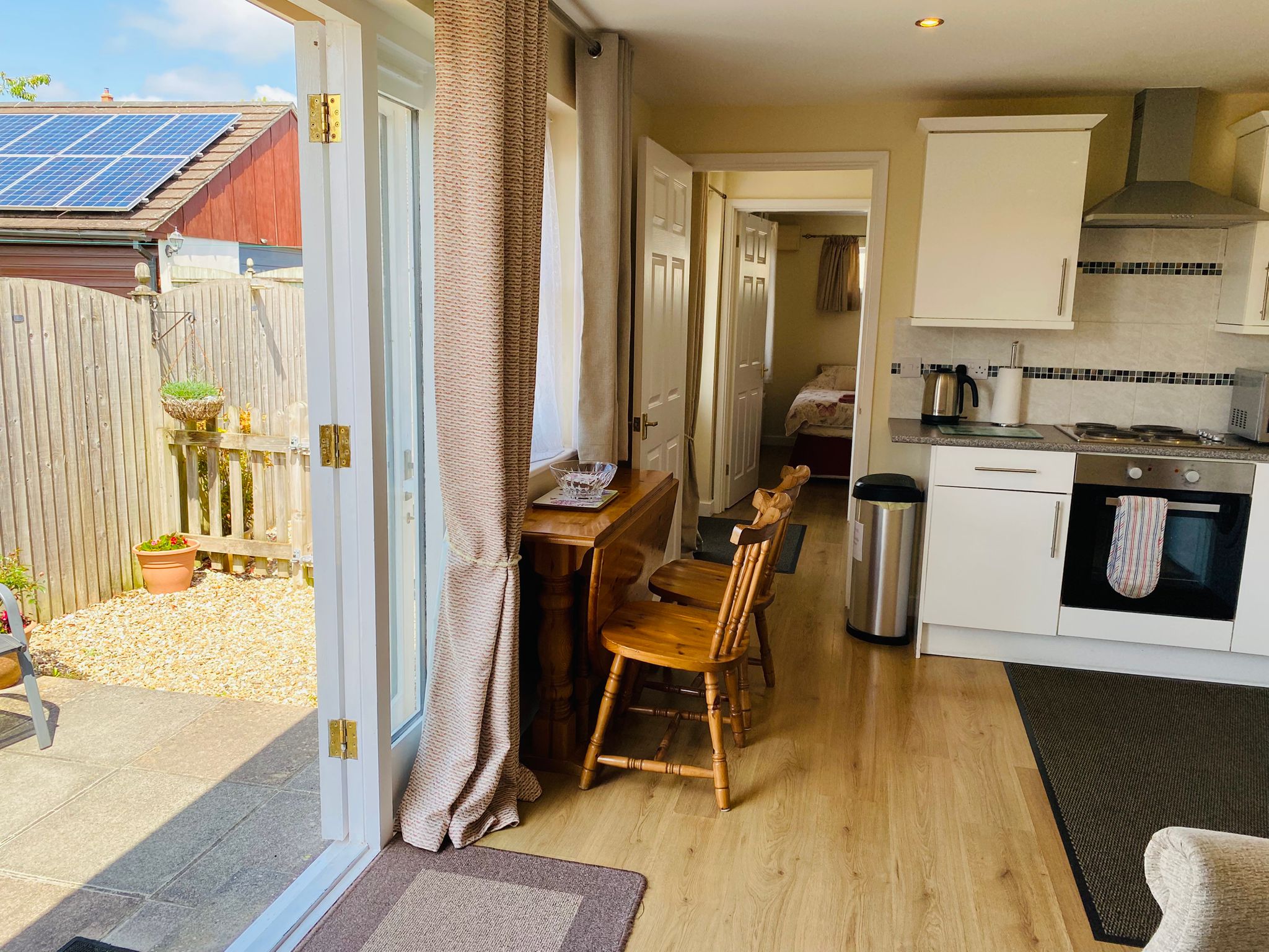 The open plan living area provides light and airy accommodation with a twin bedroom.